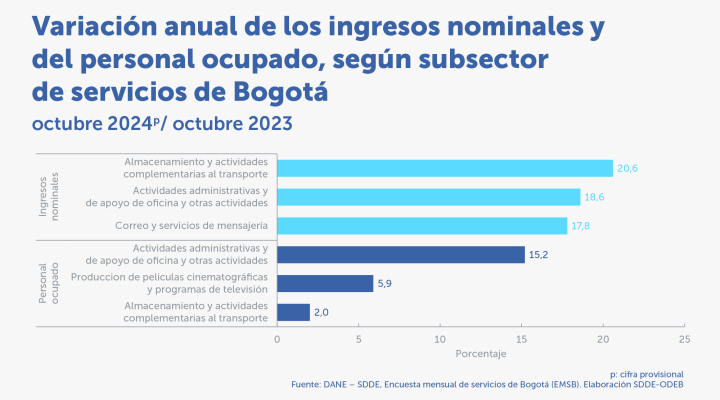 En octubre de 2024, quince actividades de servicios aumentaron los ingresos Destacados: En octubre de 2024, quince de las dieciocho actividades de servicios analizadas registraron un aumento en los ingresos nominales.