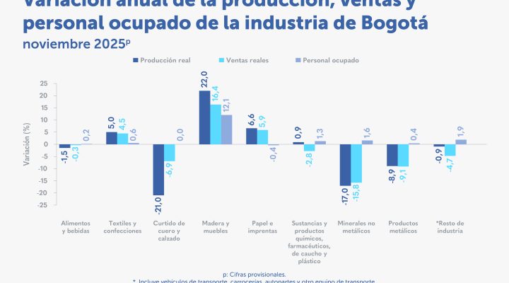 En noviembre de 2025, el empleo y la producción industrial crecieron en Bogotá Destacados: El personal ocupado en el sector aumentó un 1,2 % durante el periodo de análisis. La producción real creció