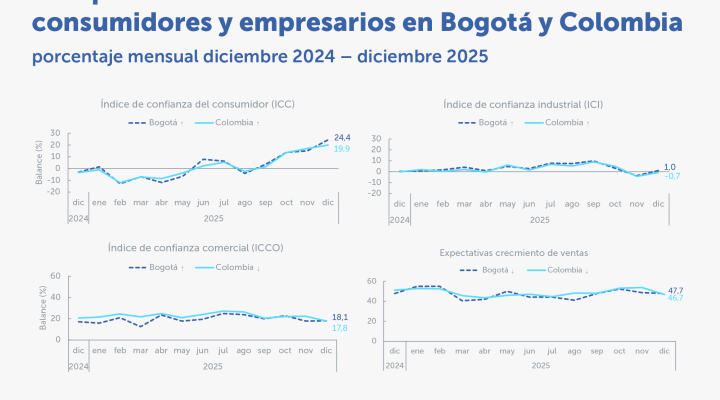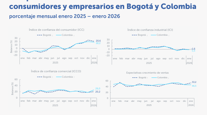 En enero de 2026, las expectativas sobre las ventas en Bogotá presentaron una mejora. Destacados: El primer mes del año inicia con una mejora de 2,1 puntos porcentuales (p.p.) en la confianza de los