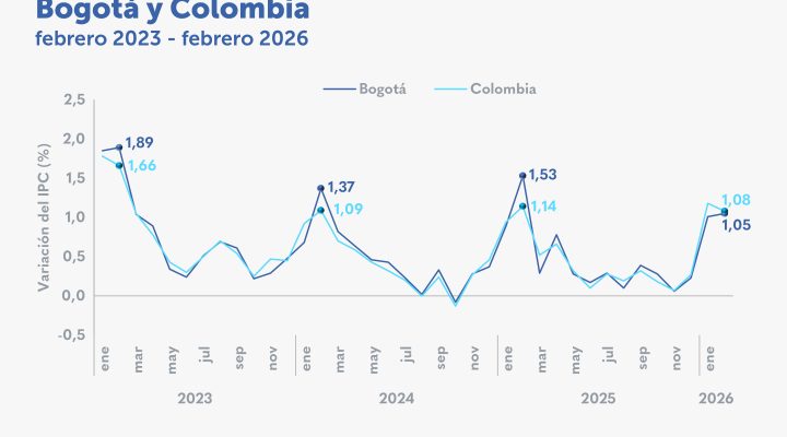 La inflación mensual de febrero en Bogotá (1,05 %) es la más baja en los últimos cuatro años Destacados: La inflación en febrero de 2026 estuvo 0,48 puntos porcentuales (p.p.) por debajo de la del mismo mes del