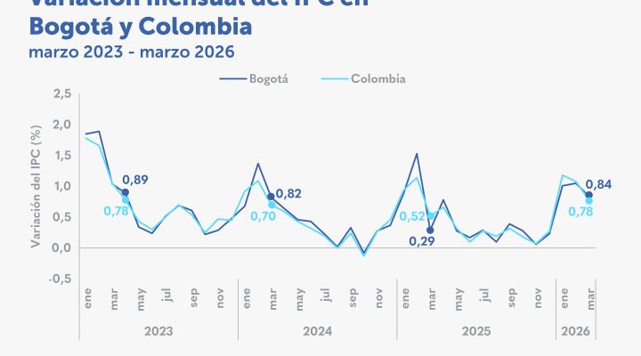 La inflación mensual de marzo en Bogotá fue de 0,84 % Destacados: La inflación en marzo de 2026 estuvo 0,55 puntos porcentuales (p.p.) por encima de la del mismo mes del
