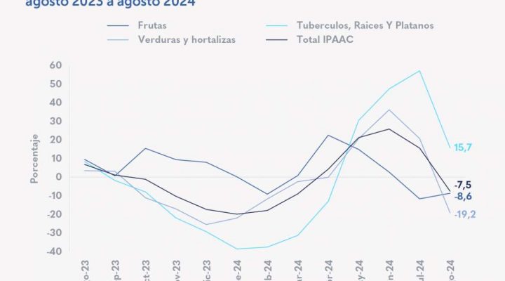 En agosto de 2024 el Índice de precios de alimentos IPAAC disminuyó 7,5 % Destacados: En agosto de 2024, el abastecimiento y sacrificio de ganado alcanzó 230.536 toneladas (ton) en Bogotá aumentando 1,2 % frente a