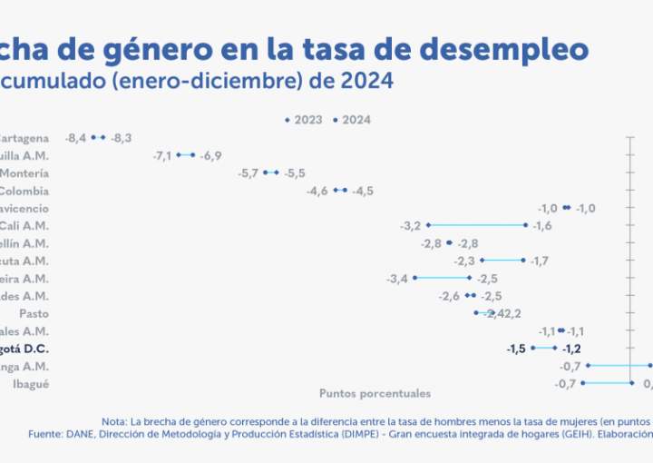 Durante el año acumulado (enero-diciembre), disminuyó la tasa de desempleo de las mujeres en Bogotá