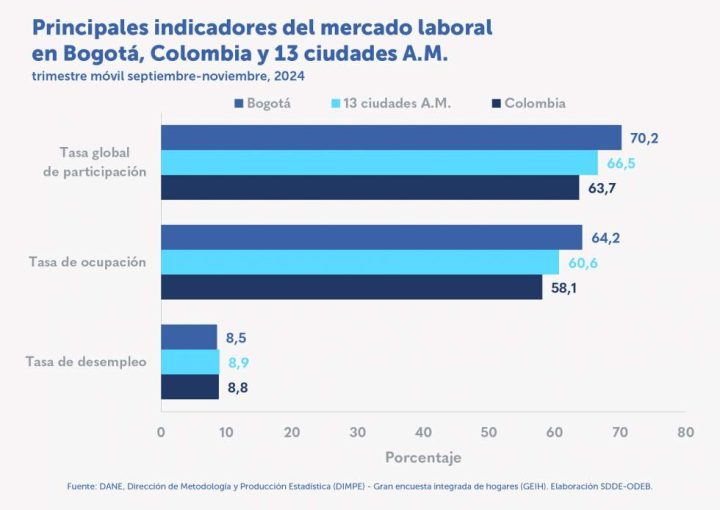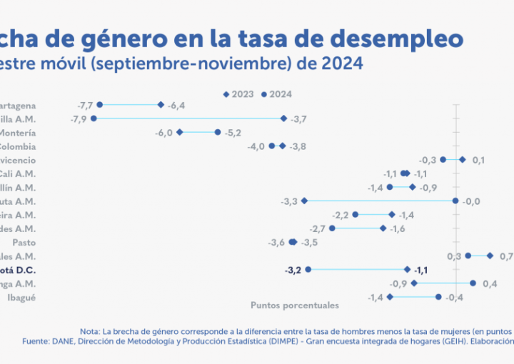 En el trimestre septiembre-noviembre de 2024, la tasa de desempleo de los hombres disminuyó 1,2 p.p.