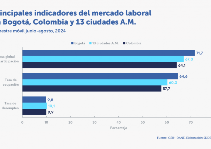 En el trimestre mayo-julio de 2024, la tasa de ocupación de las mujeres aumentó 2,1 p.p., respecto al mismo periodo de 2023