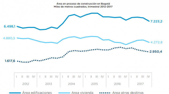 En el cuarto trimestre de 2017 el área enproceso de construcción de la viviendacreció 7,9% frente al 2016 Archivo de descarga: Boletín construcción No. 71 Temas: Construcción BogotáTipo de Publicación: Boletines