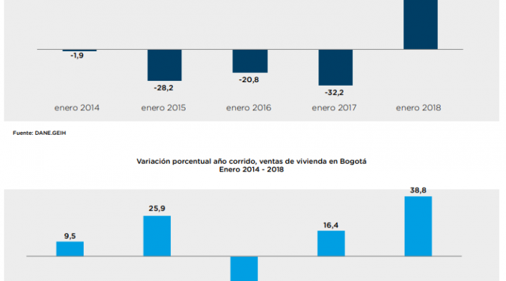 En enero de 2018 las áreaslicenciadas de construccióncrecieron 57,7%. Archivo de descarga: Boletín construcción No. 70 Temas: Construcción BogotáTipo de Publicación: Boletines