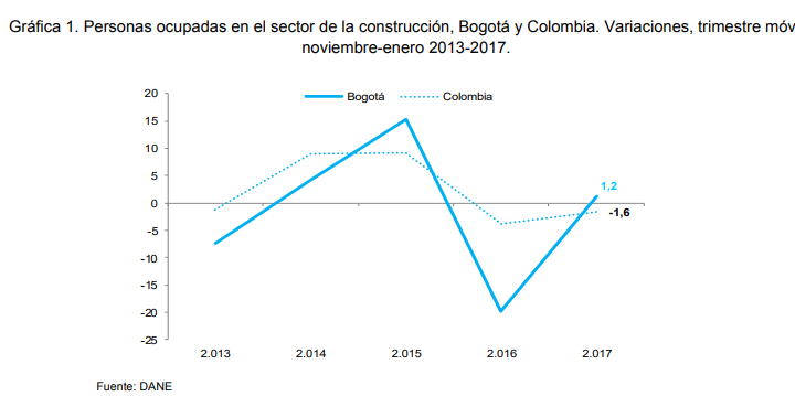 En el trimestre móvil enero-marzo de 2017, 6.474 personas encontraron empleo en la construcción. Archivo de descarga: Boletín construcción No. 59 Temas: Construcción BogotáTipo de Publicación: Boletines