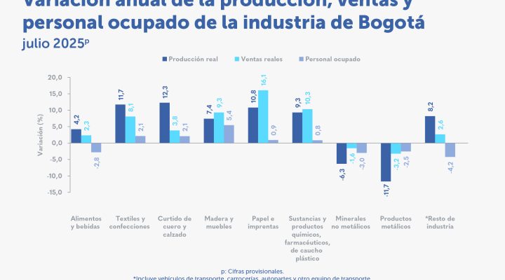 En julio de 2025, la producción y las ventas reales de la industria en Bogotá crecieron Destacados: Las ventas reales de la industria en la ciudad aumentaron un 6,2% en comparación con julio de 2024. En