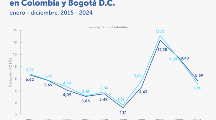 La inflación de Bogotá durante 2024 fue de 5,69 % Destacados: La inflación de la capital en 2024 fue 0,49 puntos porcentuales (p.p.) superior a la del país, que alcanzó el 5,20 %. Las