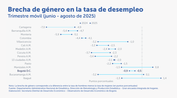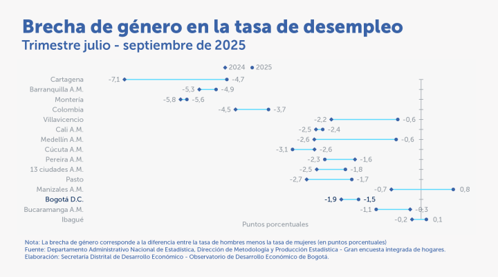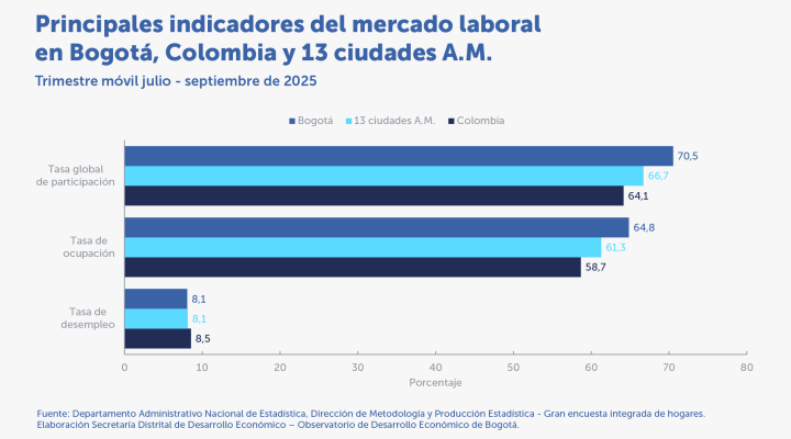 La tasa de desempleo de la capital fue la más baja desde 2007 Destacados: La población ocupada de Bogotá aumentó 75.766 personas durante eltrimestre móvil junio – septiembre de 2025 respecto al mismo