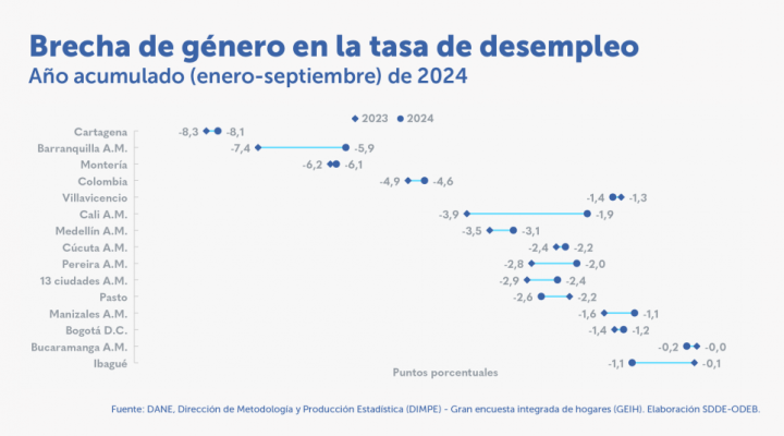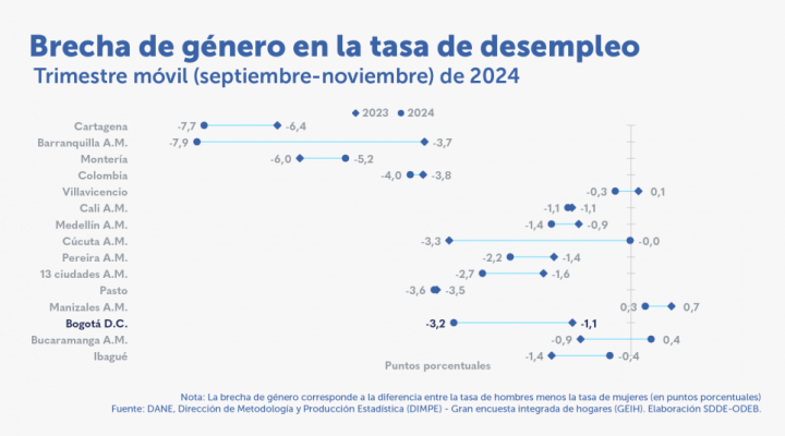 Destacados: Los sectores que explicaron el crecimiento en la ocupación fueron: Actividades artísticas, industrias manufactureras y comercio. La tasa de desempleo (TD) de Bogotá