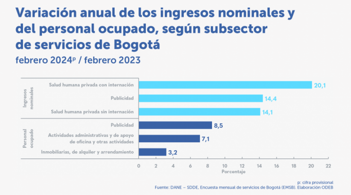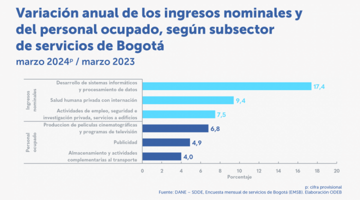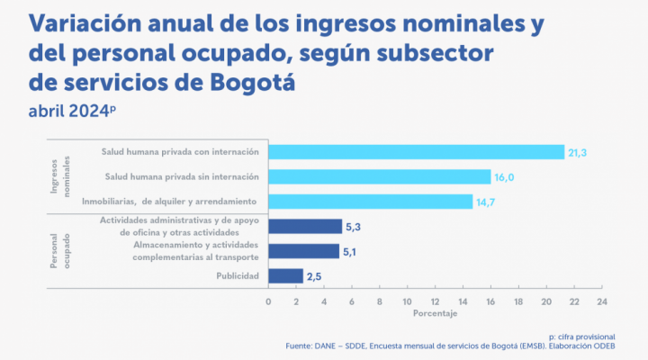 Destacados: En mayo de 2024, tres actividades de servicios aumentaron los ingresos nominales2: Publicidad, educación superior privada y restaurantes, catering y bares. Dieciséis de las