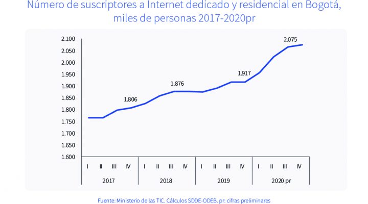 En 7% aumentaron los suscriptores de internet en Bogotá en el segundo trimestre de 2020 Destacados: En el periodo comprendido entre abril y junio del año 2020, el aumento y el mejoramiento de las conexiones