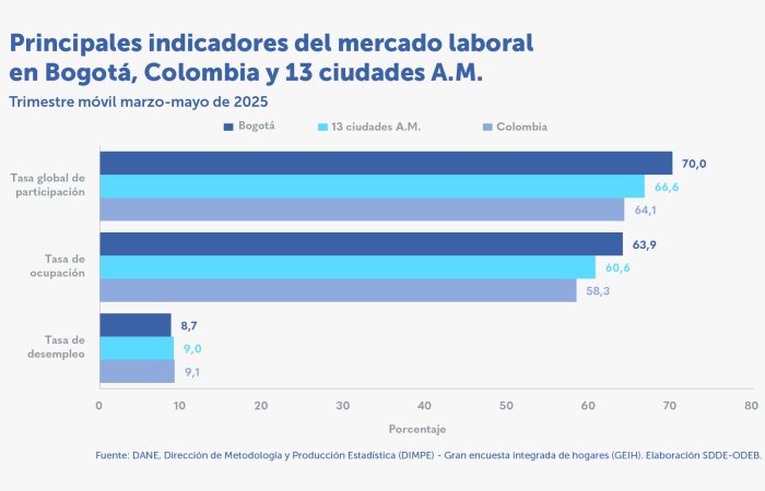 Tags Boletines 27 de junio de 2025 La tasa de desempleo en Bogotá se redujo a 8,7 % en el trimestre marzo-mayo de 2025