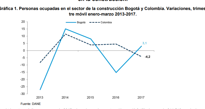 En el trimestre móvil enero-marzo de 2017, 6.474 personas encontraron empleo en la construcción.