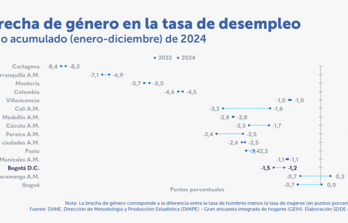 Durante el año acumulado (enero-diciembre), disminuyó la tasa de desempleo de las mujeres en Bogotá