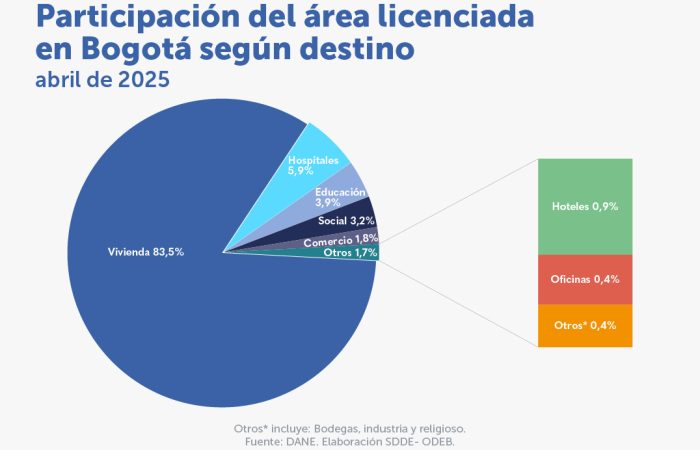 En abril de 2025, el área total licenciada en el sector de la construcción aumentó un 7,5 % en Bogotá