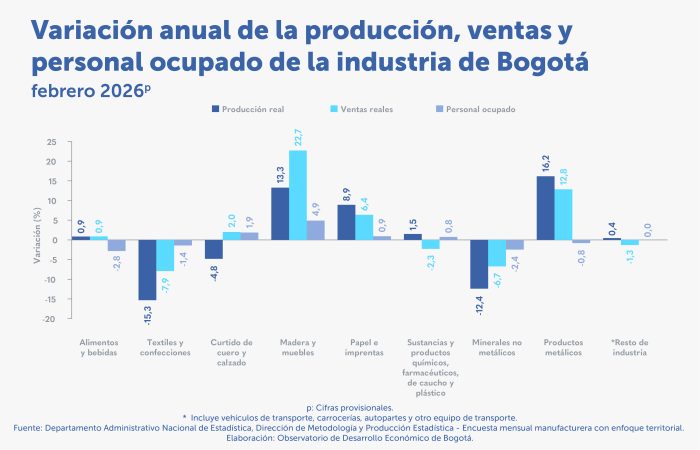 Tags Boletines 1 de abril de 2026 En febrero de 2026, mejora la confianza de los industriales en Bogotá