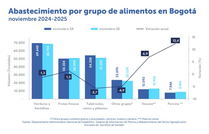Tags Boletines 5 de febrero de 2026 Bogotá disminuye su abastecimiento de alimentos en 2,3 % para noviembre de 2025