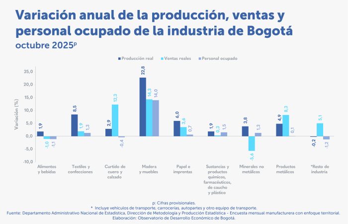 Tags Boletines 23 de enero de 2026 En octubre de 2025, crecieron la producción, las ventas y el empleo de la industria en Bogotá