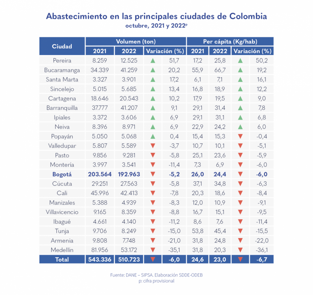 • El abastecimiento per cápita disminuyó 6,0 % en comparación con octubre de 2021.