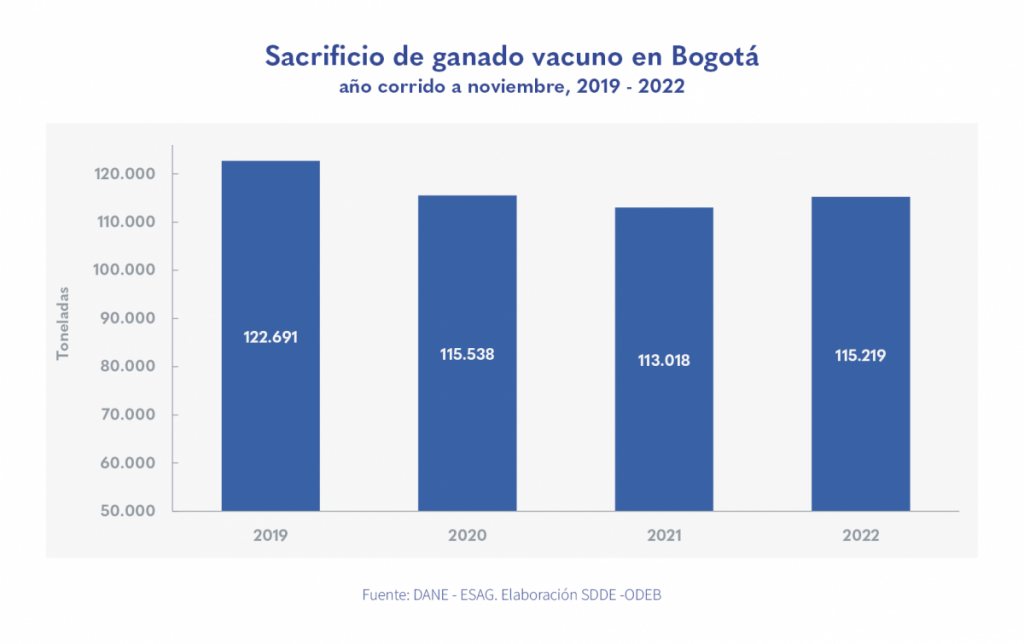 El sacrificio de ganado vacuno en noviembre de 2022 fue de 10.926 ton de carne en canal, superando en un 102,3 % el nivel registrado en noviembre de 2019.