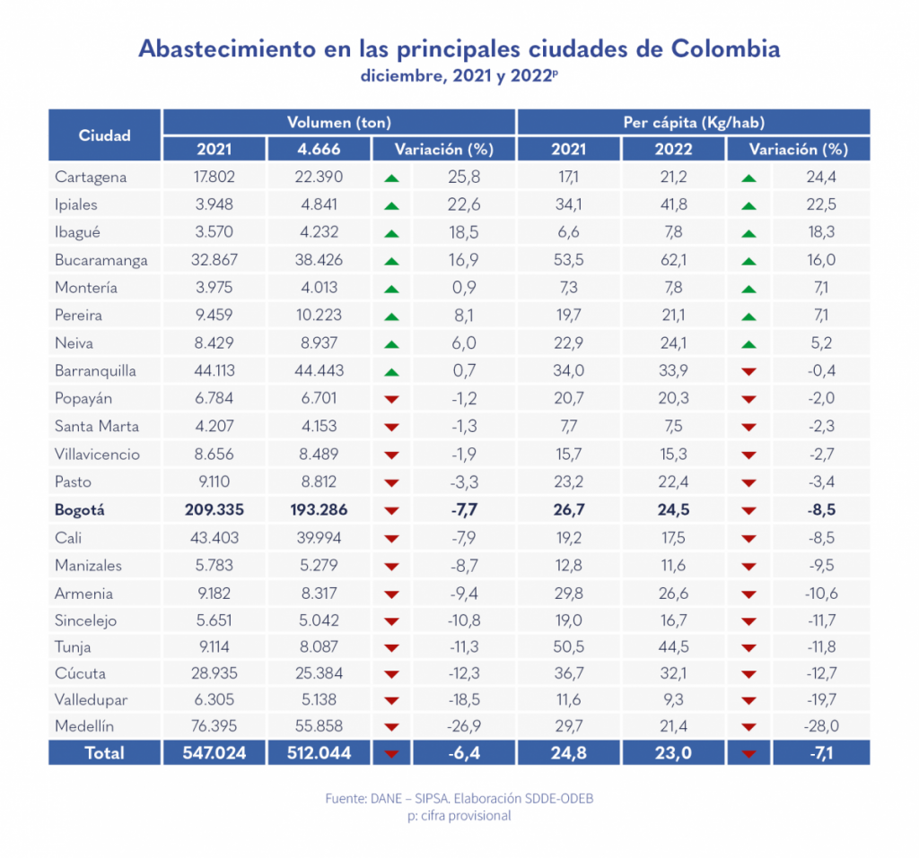 En Bogotá el abastecimiento de alimentos alcanzó 193.286 toneladas (ton) en diciembre de 2022.