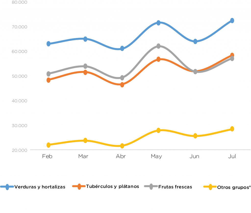 Published in: Boletines El abastecimiento en Bogotá aumenta 6% en julio de 2019 Author Manuel Roberto Sánchez Rojas Published on: 25 de octubre de 2019 Destacados: Corabastos es el centro de acopio más representativo de Bogotá, en julio de 2019 reunió el 94,6% del total del abastecimiento de la capital. Archivo de descarga: Boletín abastecimiento No.65 Temas: Abastecimiento. Tipo de Publicación: Boletines