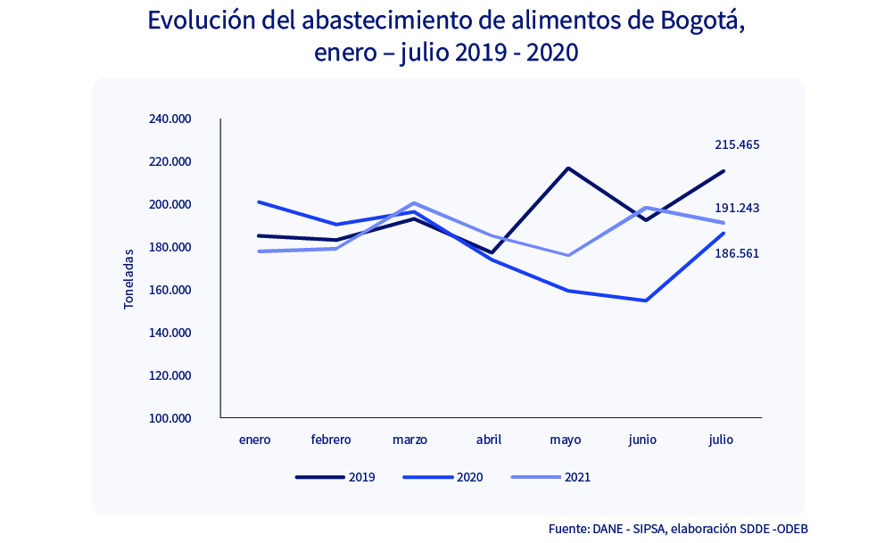• El abastecimiento en la capital alcanzó 191.243 toneladas en el mes de julio de 2021, contribuyendo 0,8 p.p. al total nacional.