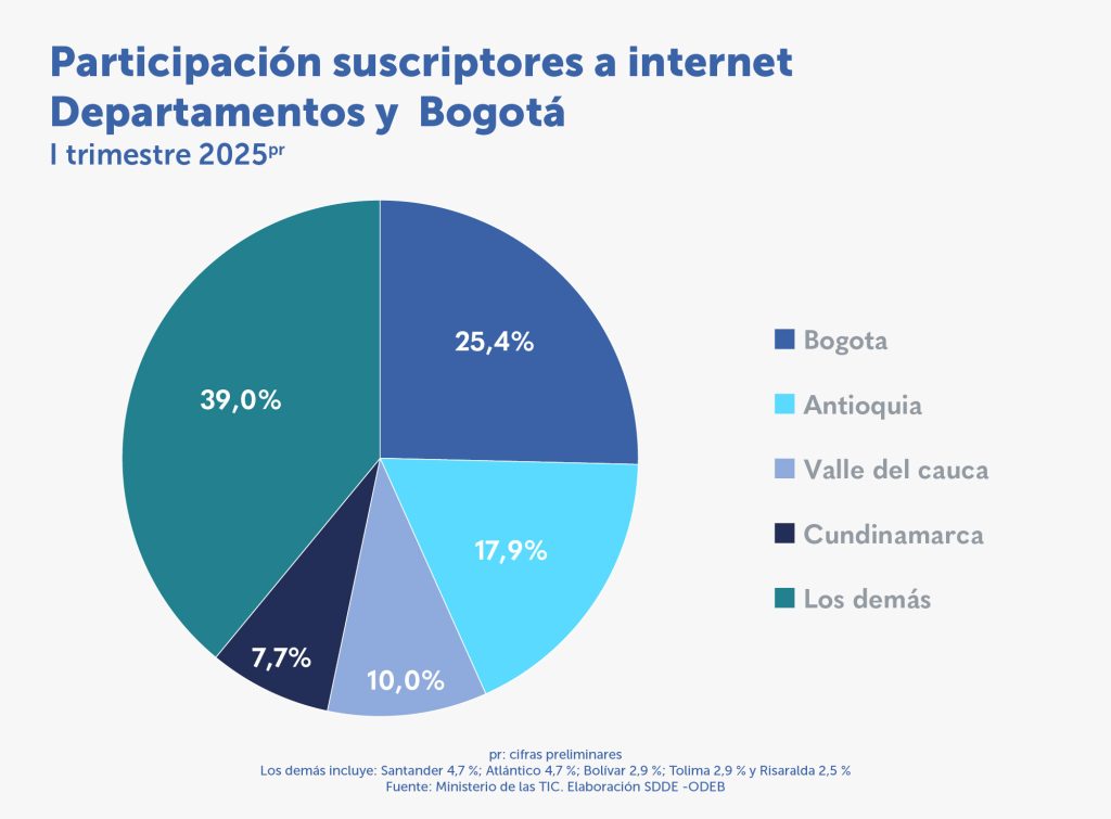 • Bogotá, concentra el 25,4 % de la totalidad de suscriptores al servicio de internet en el país.