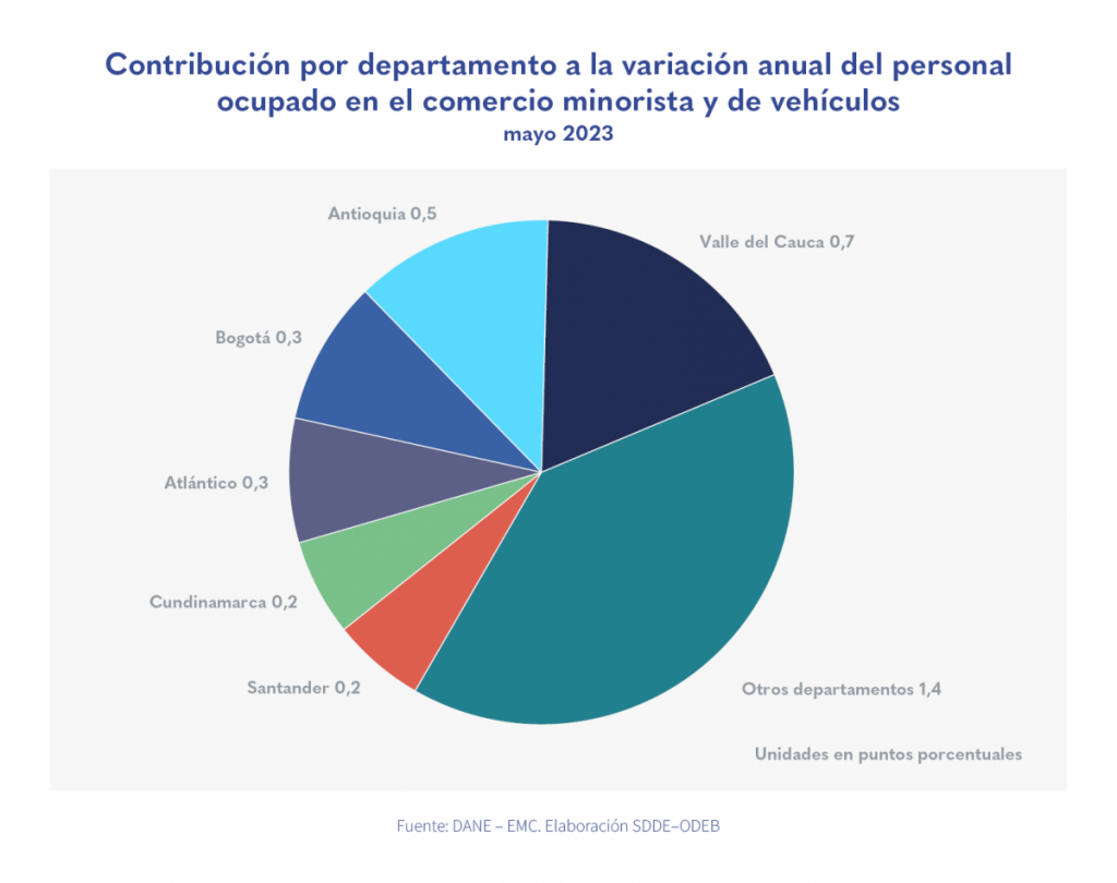 Bogotá contribuyó 0,3 puntos porcentuales (p.p.) al crecimiento de 3,6 % del personal ocupado por el comercio en el país.