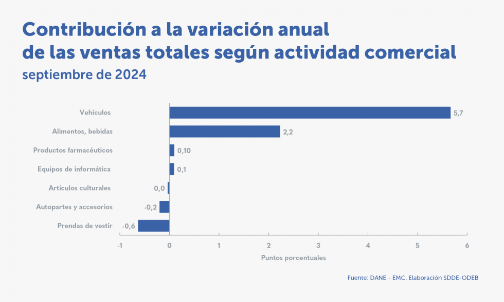 • El comercio de vehículos automotores nuevos creció 15,3 % entre septiembre de 2023 y septiembre de 2024.