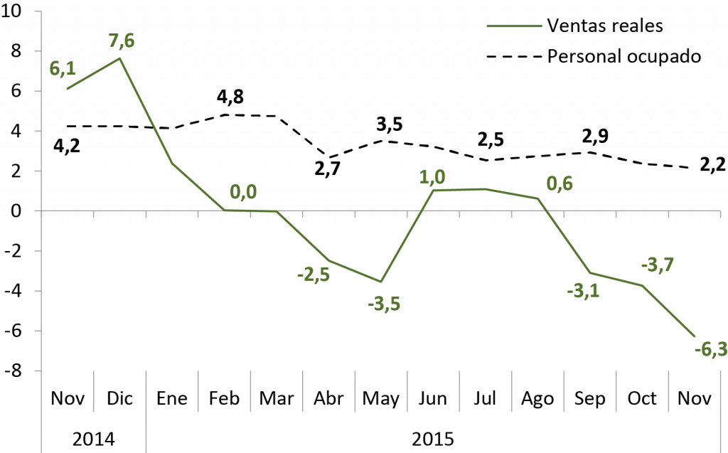 Bogotá representa el 31,3% de la venta de vehículos en el país, lo que constituye a la ciudad como el mercado más grande de este tipo de bienes durables. En el país, la variación en las ventas del comercio minorista para noviembre fue de -0,3%. Bogotá y Bucaramanga fueron las únicas ciudades con variación negativa. La variación de las ventas reales en Bogotá, en el año corrido (enero-noviembre), fue de -1,4%. En Bogotá, el personal ocupado se incrementó 2,2%, cifra que supera solamente a Medellín y Bucaramanga.