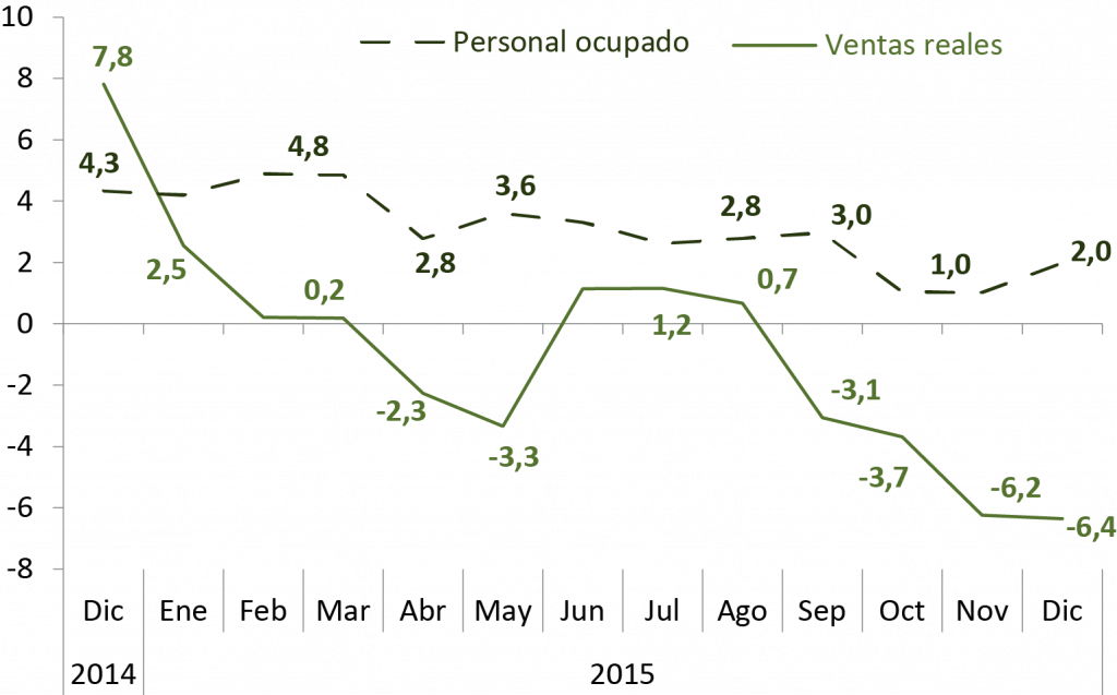 • La variación de las ventas reales en Bogotá, durante el IV trimestre de 2015, fue de -5,5%.
