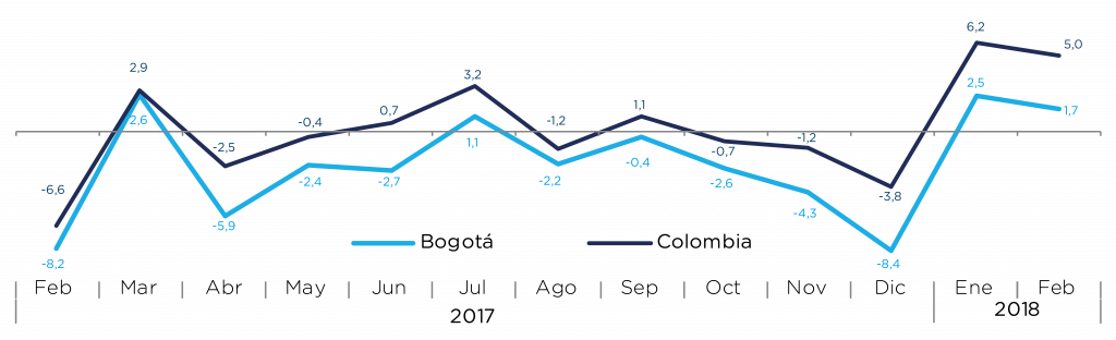 Published in: Boletines Las ventas del comercio al por menor en Bogotá crecieron 1,7%, en febrero de 2018 Author Observatorio Economico Published on: 26 de abril de 2018 Destacados: Las ventas minorista febrero 2018Barranquilla 3,5%Bucaramanga 3,1%Medellín 2,5%Bogotá 1,7%Cali 1,3%. Archivo de descarga: Boletín comercio al por menor No. 52 Temas:Comercio al por menor Tipo de Publicación: Boletines