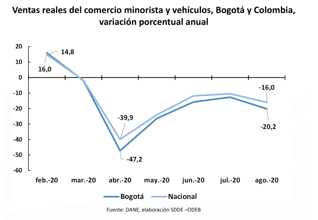Published in: Boletines Por sexto mes consecutivo las ventas al por menor reportan variaciones negativas Author Observatorio Economico Published on: 31 de octubre de 2020 Destacados: El personal ocupado en el comercio minorista y de vehículos, continuó reduciéndose en el mes de agosto, alcanzando una variación anual de -6,6%. Archivo de descarga: Boletín comercio al por menor No. 81 Temas:Comercio al por menor Tipo de Publicación: Boletines