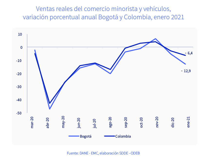 En enero de 2021, el número de vehículos nuevos vendidos en Bogotá, alcanzando 2.773 unidades. En el país, la cifra fue de 14.349 unidades.