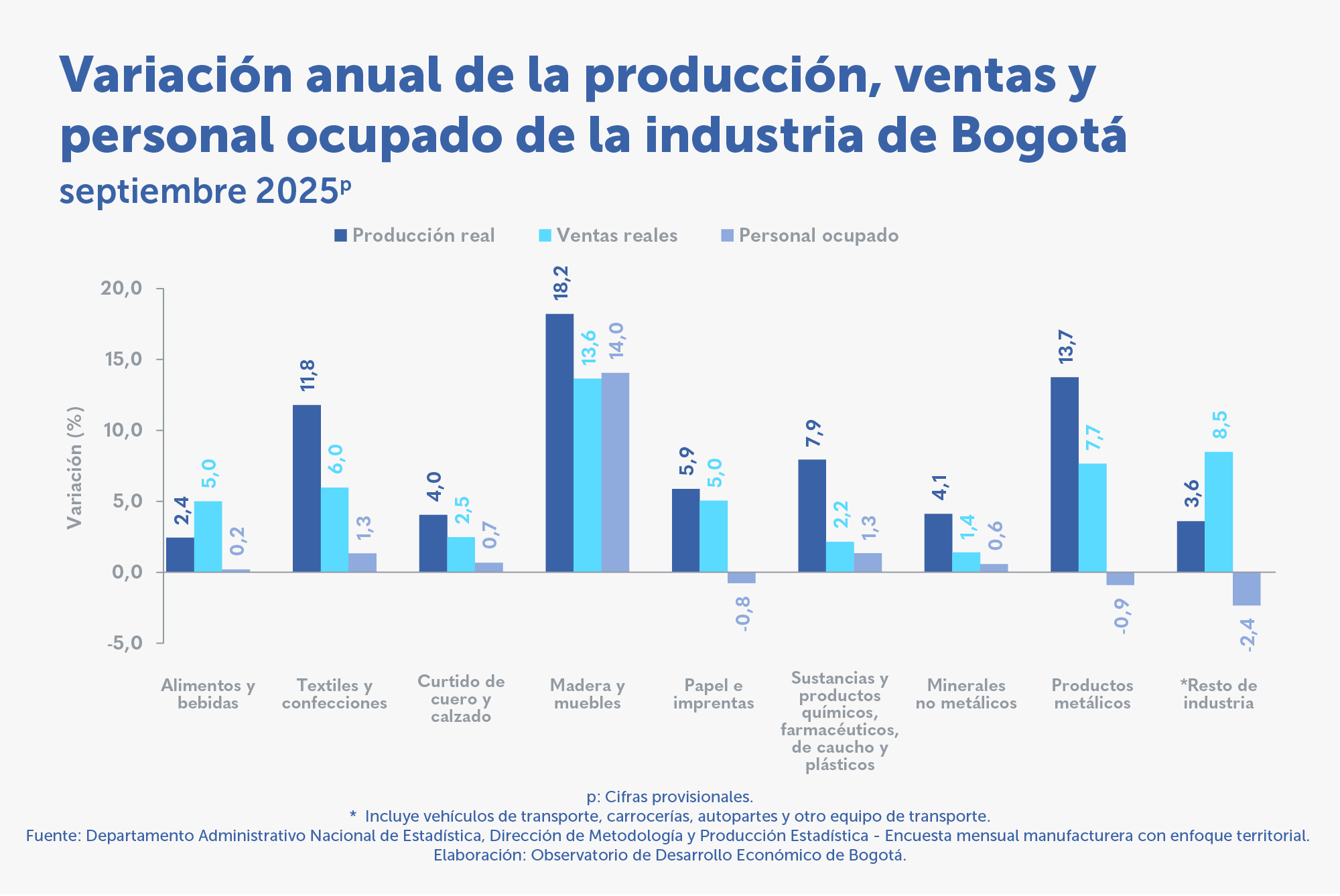 La venta de vehículos automotores fue la división que más aportó al crecimiento (22,2 puntos porcentuales a la variación de la ciudad), tuvo una variación positiva de 76,8 %. En lo corrido del año a agosto se han vendido 35.739 vehículos en Bogotá.