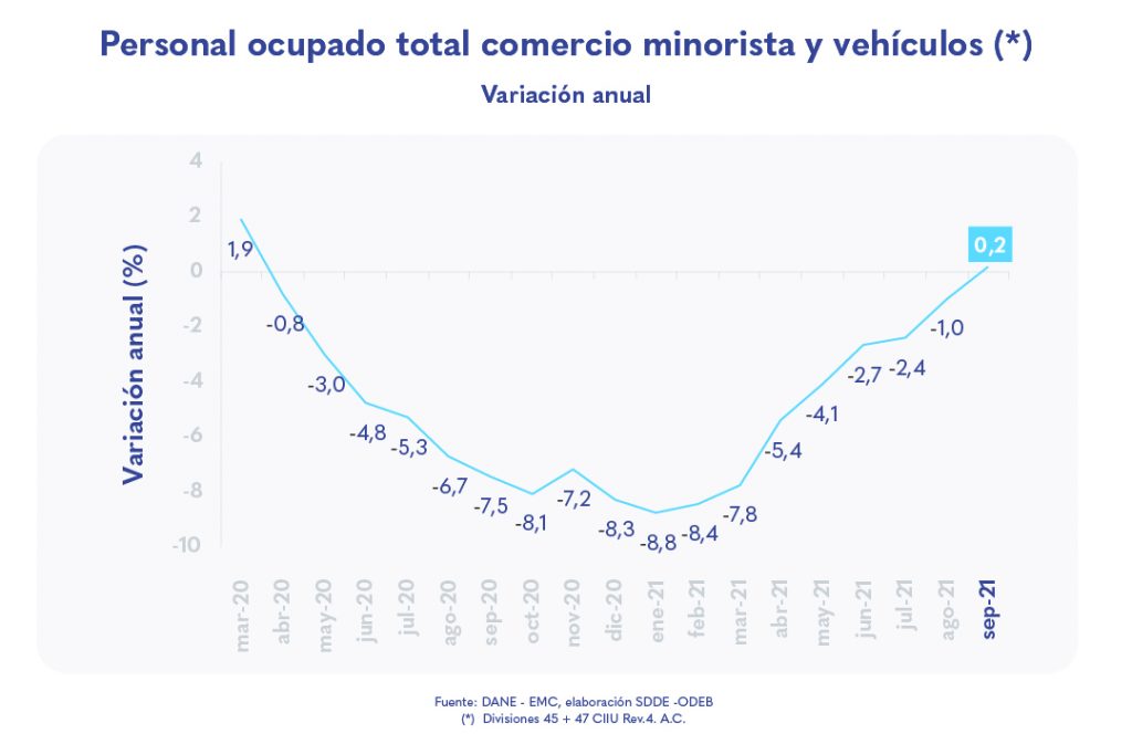 Las ventas reales del comercio al por menor en Bogotá crecieron 21,9 %, entre septiembre de 2021 y el mismo periodo de 2020.
