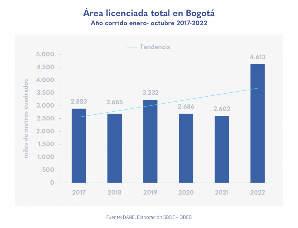 • Entre octubre 2021 y octubre 2022, el área licenciada total en Bogotá creció 221,5 %.
