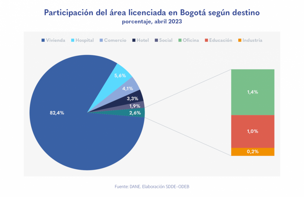 • El área licenciada en Bogotá en abril de 2023 disminuyó 61,8 % en comparación con el mismo mes de 2022.