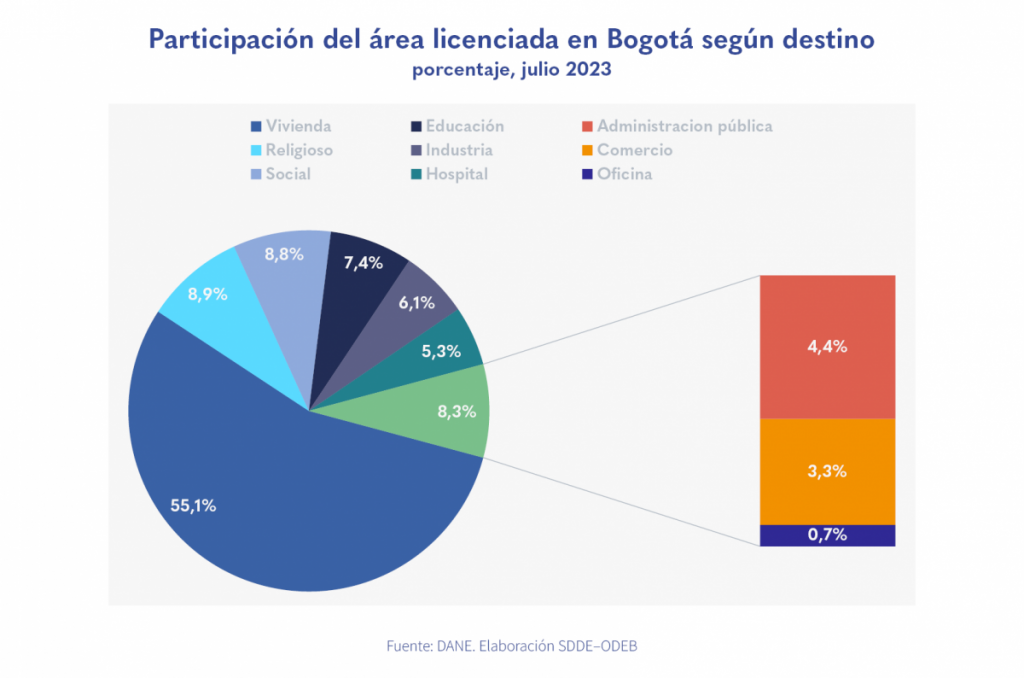 • El área licenciada en Bogotá en julio presentó una caída de 80,5 % en comparación con el mismo periodo de 2022.