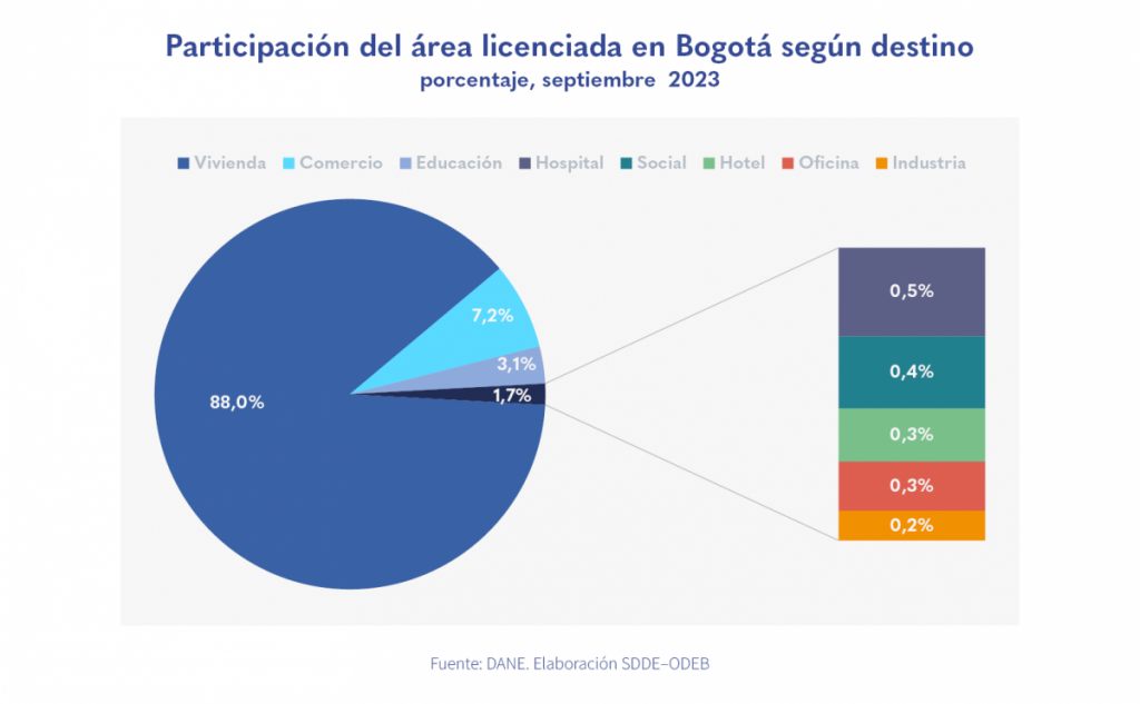 La vivienda representó el 88,0 % del total del área licenciada en el periodo de análisis.