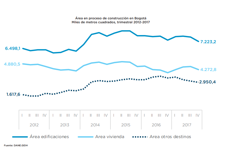 Published in: Boletines En el cuarto trimestre de 2017 el área enproceso de construcción de la viviendacreció 7,9% frente al 2016 Author Observatorio Economico Published on: 27 de mayo de 2018 Archivo de descarga: Boletín construcción No. 71 Temas: Construcción Bogotá Tipo de Publicación: Boletines
