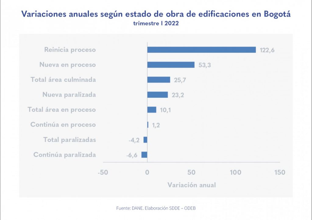 • El área en proceso de construcción de edificaciones en Bogotá, registró una variación anual de 10,1 % y una recuperación de 88,3 % respecto al periodo prepandemia.
