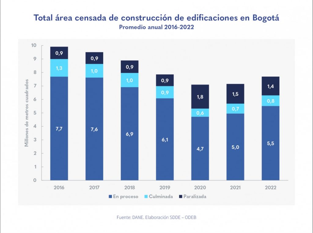 La localidad de Fontibón presentó la mayor área censada para edificaciones en 2022, con un promedio trimestral de 1 millón de metros cuadrados (m2) en construcción.