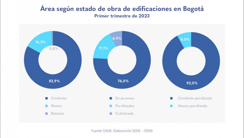 En el primer trimestre de 2023, el área construida de edificaciones en Bogotá creció 1,2 % en comparación con el primer trimestre de 2022.
