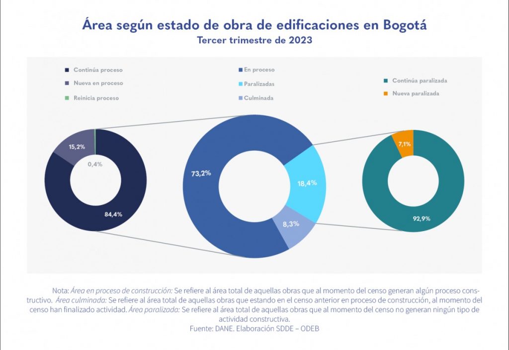 En el tercer trimestre de 2023, Bogotá registró un área censada de edificaciones de 8.820 mil metros cuadrados (m2).