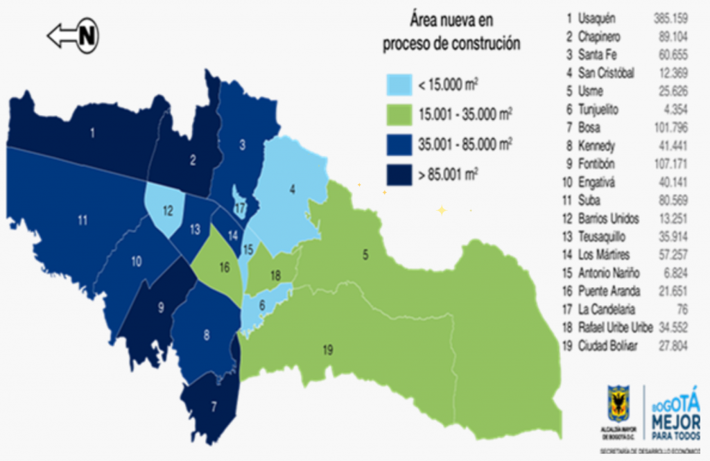 Published in: Boletines Área nueva en proceso de construcción aumentó 320.142 m2 en Usaquén Author Observatorio Economico Published on: 20 de octubre de 2016 Destacados: El área total en proceso de construcción aumentó 27,5% en la localidad de Fontibón.Usme disminuyó en 74,2% las unidades de viviendas nuevas en proceso de construcción.El área nueva para la construcción de otros destinos aumentó 162,4% en los municipios aledaños a Bogotá.Municipios como Cajicá, Funza y Zipaquirá presentaron la mayor dinámica constructiva en el segundo trimestre del año. Archivo de descarga: Boletín construcciÓn regional No.7 Temas: Construcción regional. Tipo de Publicación: Boletines